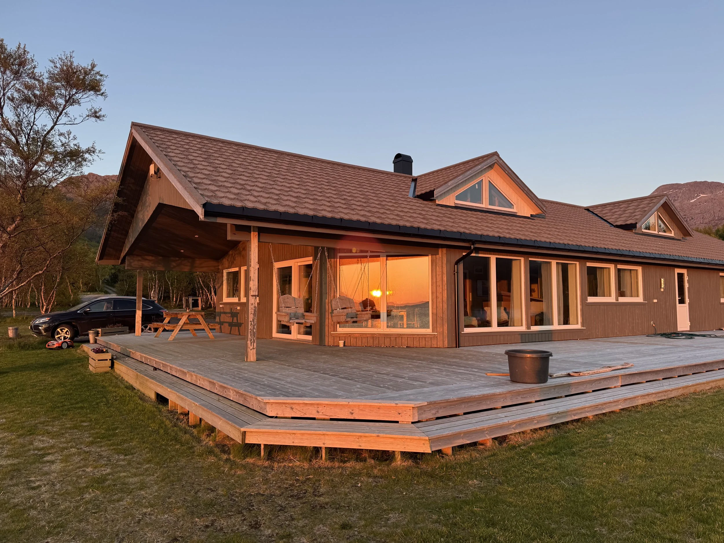 Grannen Lodge is a spacious and exclusive retreat on the Helgeland coast, offering 200 square metres of comfortable living space designed for relaxation and privacy. Located at the very end of a quiet dead-end road, the house stands completely alone in nature, surrounded by silence, open landscapes, and fresh coastal air.